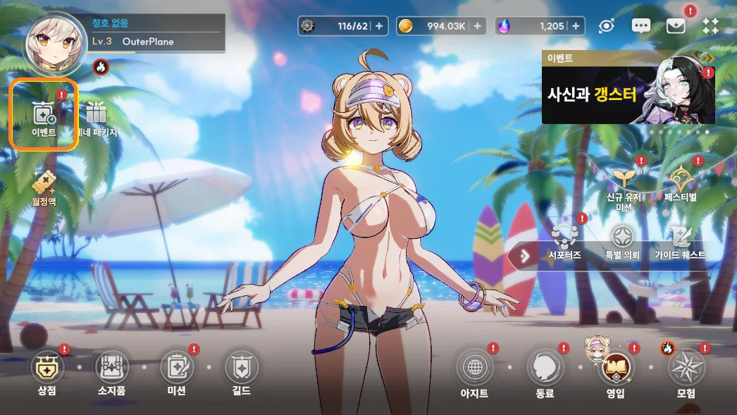 1️. 게임 내 로비 좌측에 있는 [이벤트] 아이콘을 클릭해주세요.